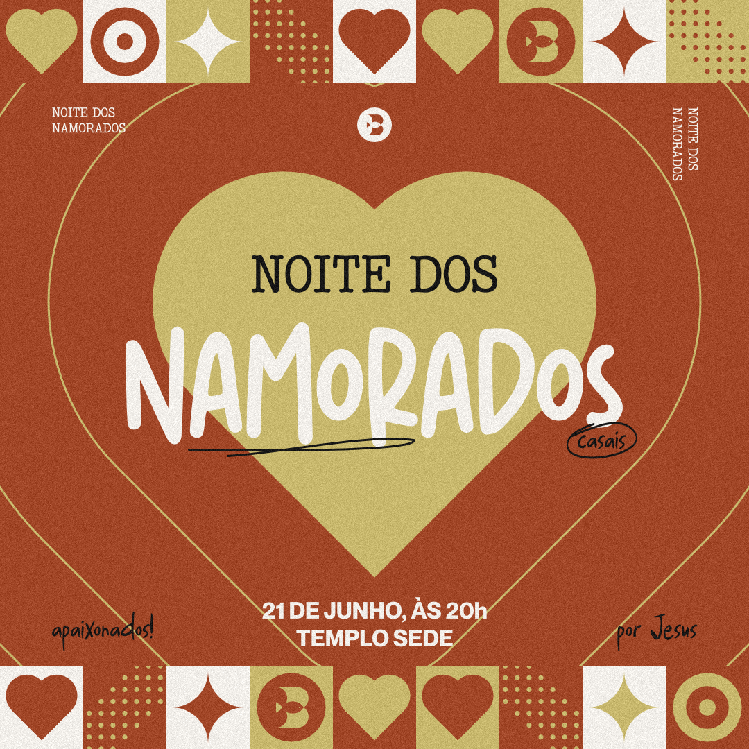 Dia 21 de junho, às 20h sua noite já está programada pois, teremos um momento especial aqui na Batista Renovada templo sede, a “Noite dos Namorados”.